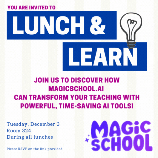 A follow up survey will be sent out to ask Lunch & Learn participants about how they have used the MagicSchool.ai features in their classroom and planning, but not until next week. Wanting to give teachers a little bit of time to play around with it in order to gather more data. Participants of the training session will also be asked if they’d like to attend a second session to learn about the MagicSchool Student features.
